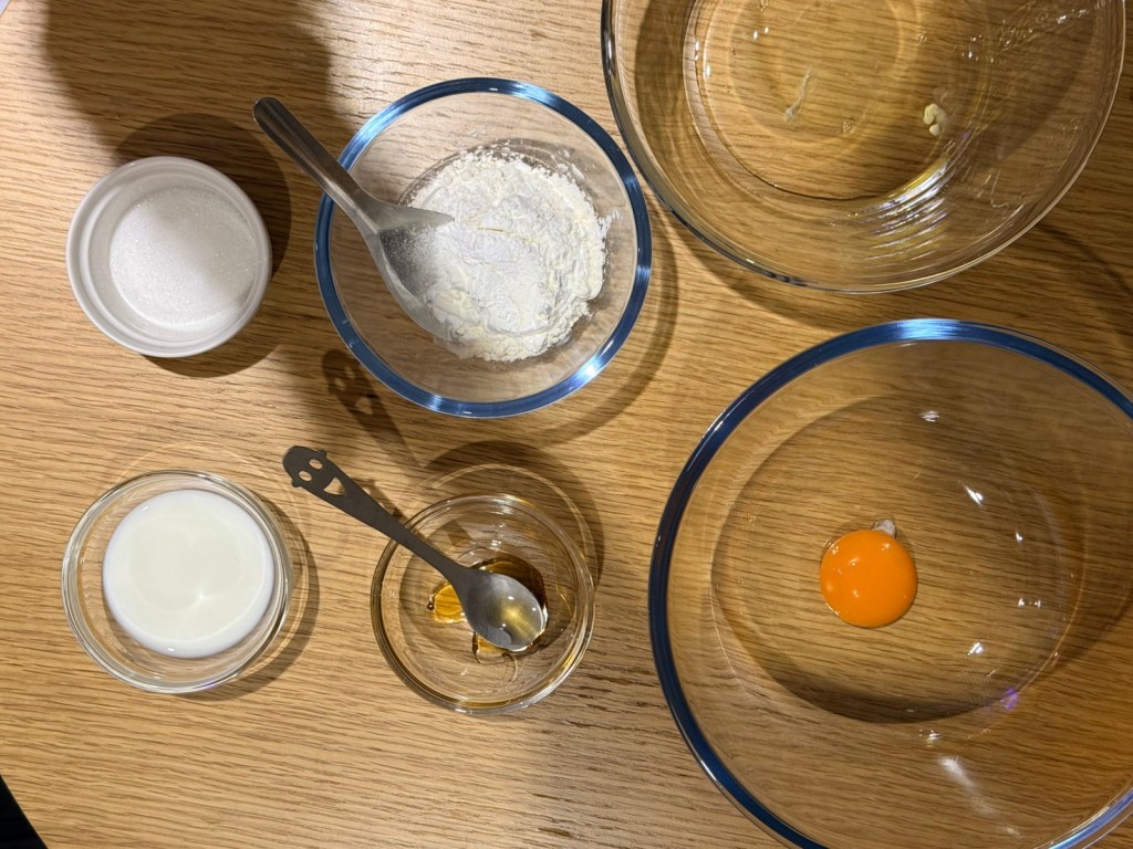 | 雞蛋 | 1 顆(常溫) | 蛋黃、蛋白分開 |