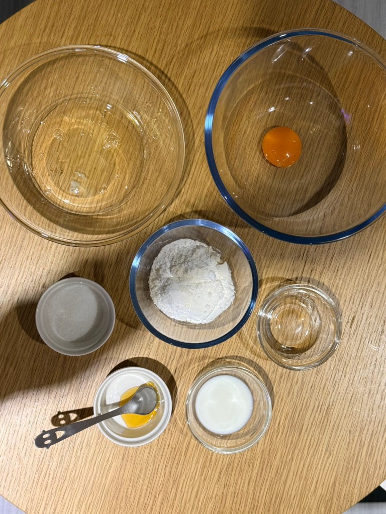 | 雞蛋 | 1 顆(常溫) | 蛋黃、蛋白分開 |